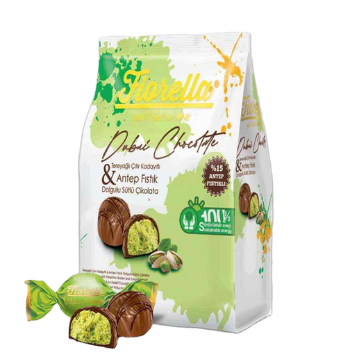 Fiorella Buttery Crunch Kadayıf & Pistachio Filled Milk Chocolate—also known as Dubai Chocolate—is a luxurious confection crafted by Fiorella under the Elvan Group (Turkey). This indulgent 60 g bar features rich milk chocolate enveloping the irresistible combination of crunchy kadayıf (shredded Turkish pastry) and pistachio filling, creating a multi-textured sensory experience.